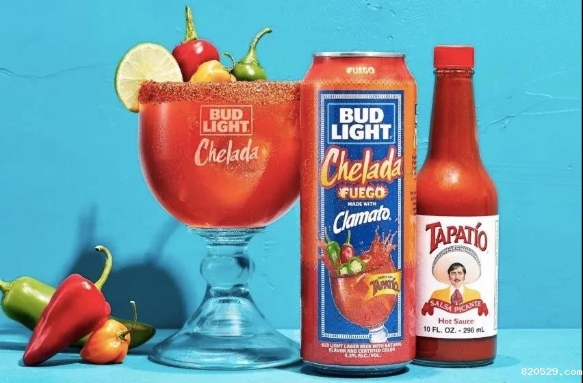 百威英博旗下淡啤品牌Bud Light最近在美国推出了一个辣酱版本的啤酒Bud Light Chelada Fuego。